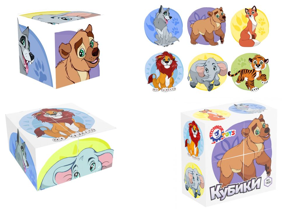 1820 Кубики 4шт. Дикі тварини 7*8*4 см Технок