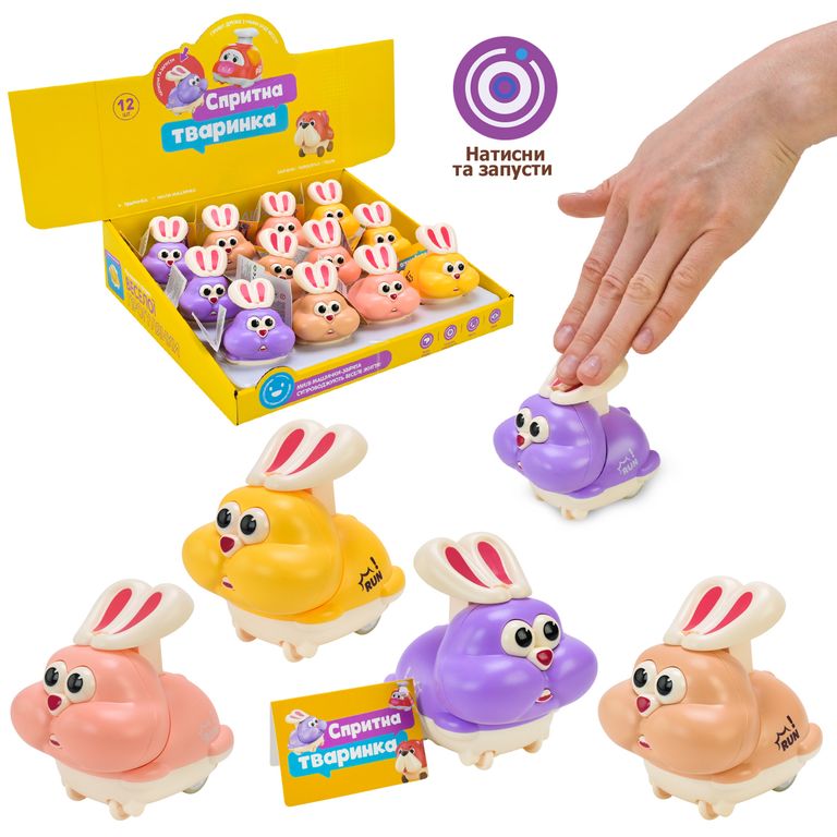 725-17 Заводна-інерційна Заєць. 4 кольори. р-р 6*8*8см. 12 шт/бокс 29.9*8.8*29.4см