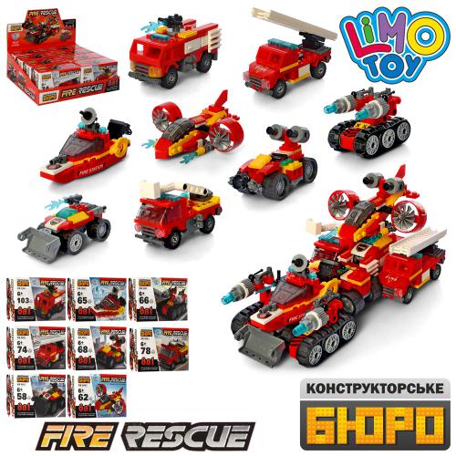 099КБ Конструктор 8в1 Пожежний Транспорт. від 58дет. в кор. 8шт(8видів). кор.12*8*4см