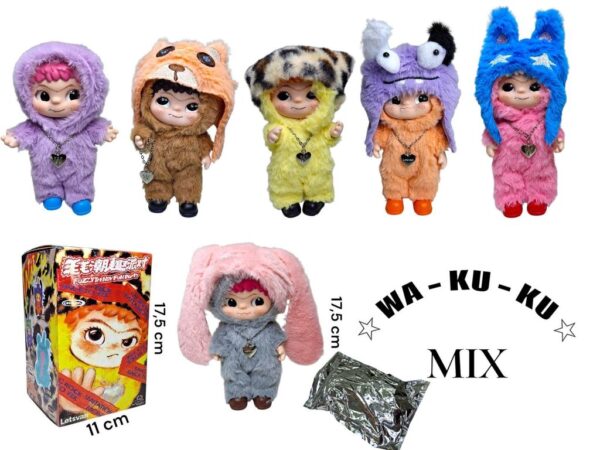 1СД-ВАКУКУ Лялька Вакуку+шапочка. 17.5см. брелок.мікс кольорів. вініл. кор.17.5*11см