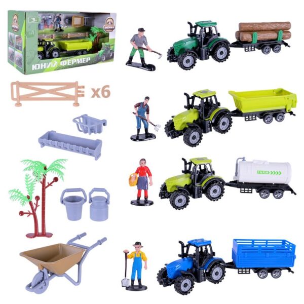 5279-101АБСД Трактор з причепом інерція. 3кольори. фігурки людей. кор.29 * 11.5 * 15см